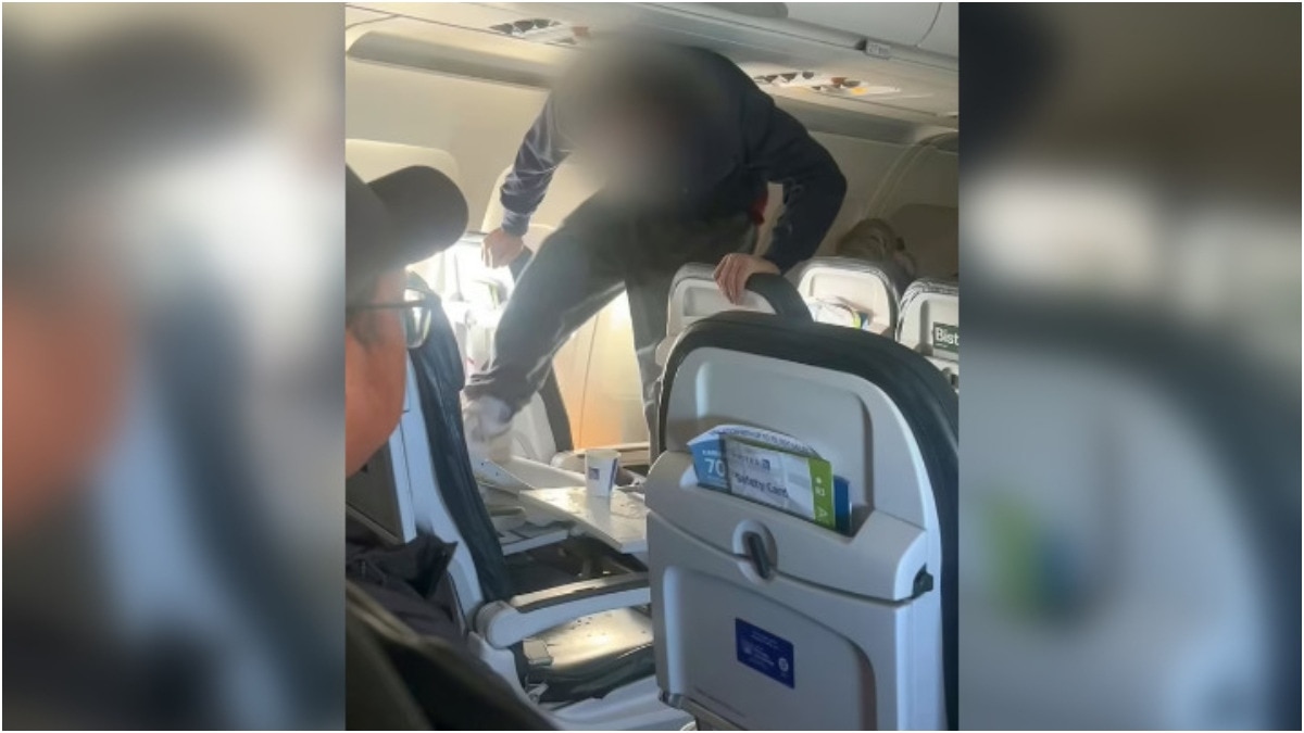 A passenger travelling on a United Airlines flight from Austin to Los Angeles was seen repeatedly kicking a seat on...