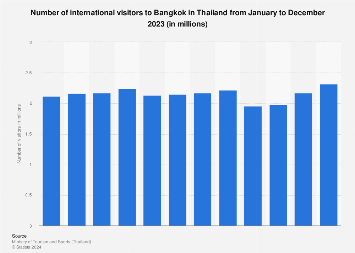 The number of international visitors in Bangkok, Thailand reached approximately 2.32 million visitors in December 2023, increasing from the previous ...